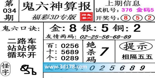 3d第21034期鬼六神算报为您推荐鬼六口诀:
