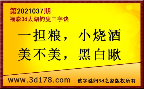 3d第21037期太湖字谜:一担粮,小烧酒,美不美,黑白瞅