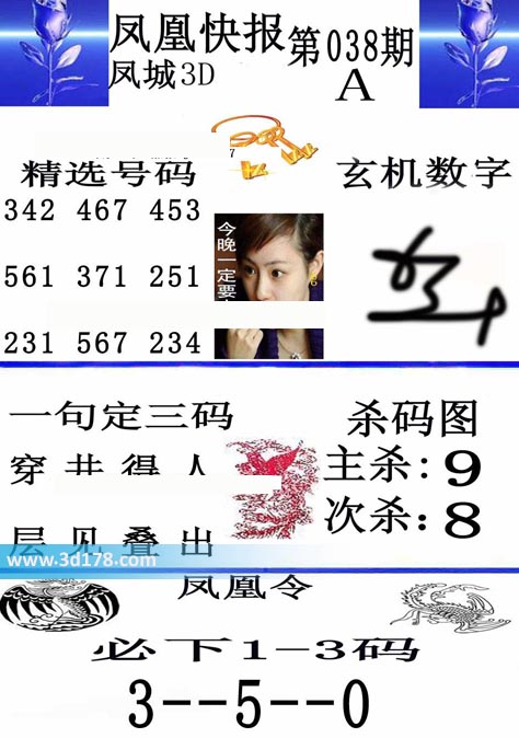 福彩3d凤凰快报图第21038期精选号码推荐: