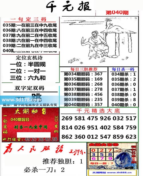 福彩3d第2021040期布衣千元报图详情分析如下: