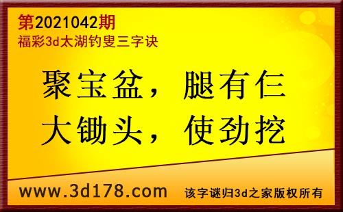 3d第21042期太湖字谜:聚宝盆,腿有仨,大锄头,使劲挖
