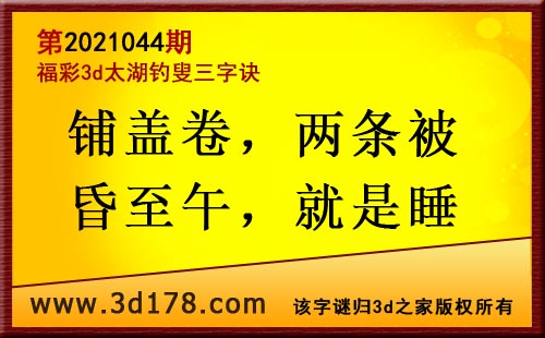3d第21044期太湖字谜:铺盖卷,两条被,昏至午,就是睡