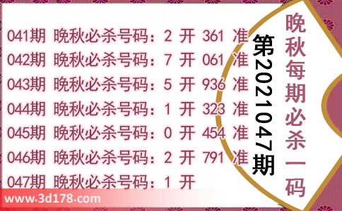 3d第2021047期晚秋杀码图详解:
