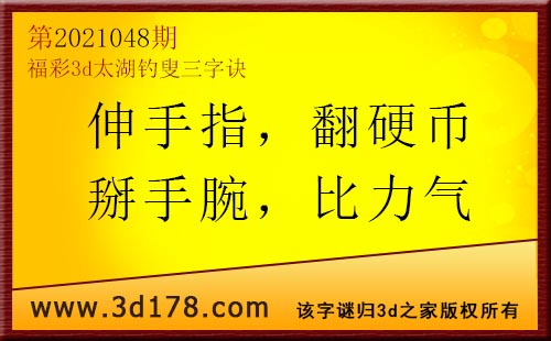 3d第21048期太湖字谜:伸手指,翻硬币,掰手腕,比力气