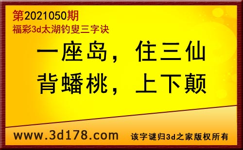 3d第21050期太湖字谜:一座岛,住三仙,背蟠桃,上下颠