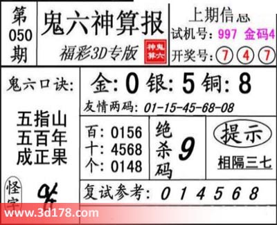 3d第21050期鬼六神算报为您推荐鬼六口诀: