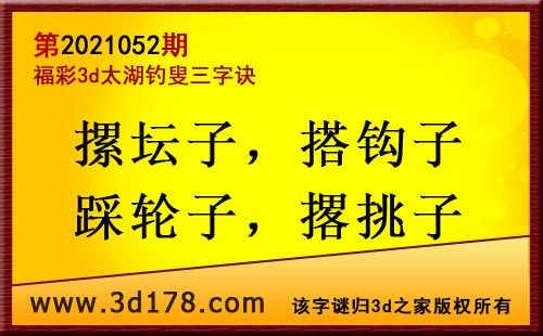 3d第21052期太湖字谜:摞坛子,搭钩子,踩轮子,撂挑子