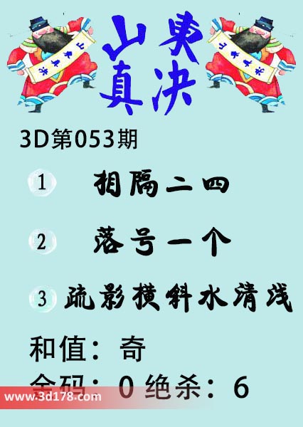 福彩3d第2021053期山东真诀图如下所示: