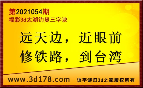 3d第21054期太湖字谜:远天边,近眼前,修铁路,到台湾
