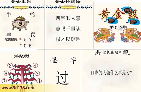 福彩3d之家第042期黄金报:
