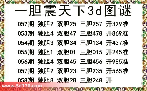 一胆震天下三胆图库由3d之家3d图库频道原创,仅供彩民参考,温馨提供。
