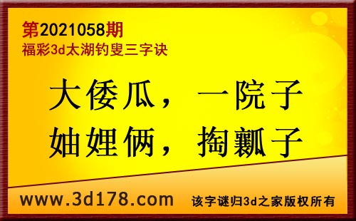 3d第21058期太湖字谜:大倭瓜,一院子,妯娌俩,掏瓤子