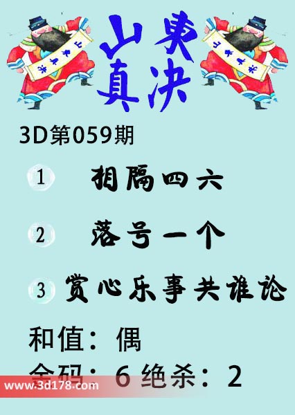 福彩3d第2021059期山东真诀图如下所示: