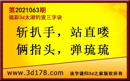 3d第21063期太湖字谜:斩扒手,站直喽,俩指头,弹琉琉