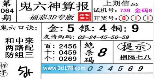 3d第21064期鬼六神算报为您推荐鬼六口诀: