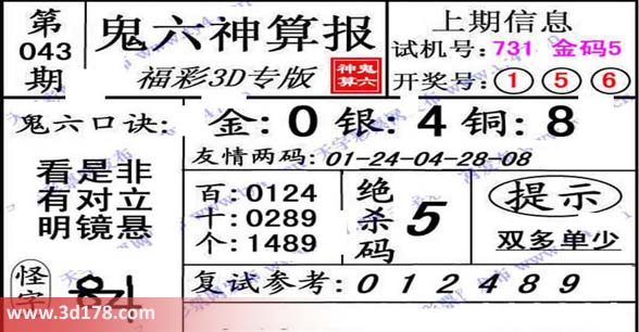 福彩3d之家第2014043期鬼六神算报详解: