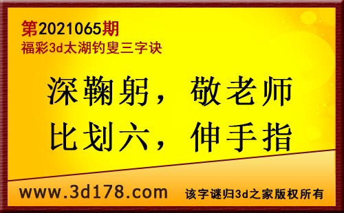3d第21065期太湖字谜:深鞠躬,敬老师,比划六,伸手指