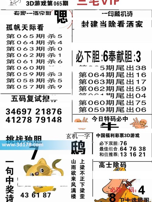 3d第2021065期三毛图库推荐: