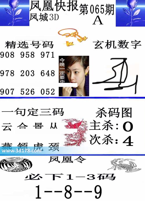 福彩3d凤凰快报图第21065期精选号码推荐: