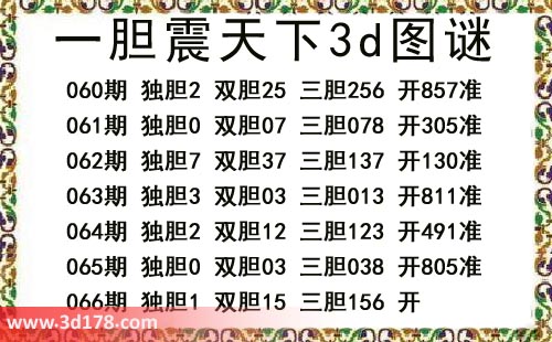 本期一胆震天下3d图谜: