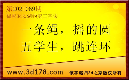3d第21069期太湖字谜:一条绳,摇的圆,五学生,跳连环