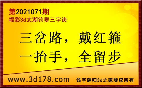 3d第21071期太湖字谜:三岔路,戴红箍,一抬手,全留步