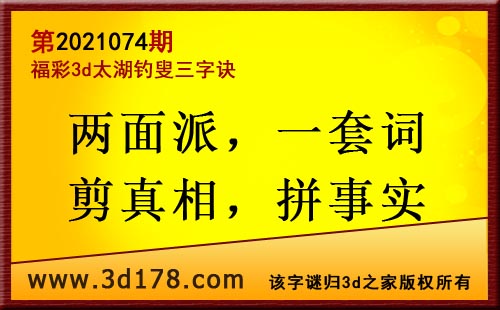 3d第21074期太湖字谜:两面派,一套词,剪真相,拼事实