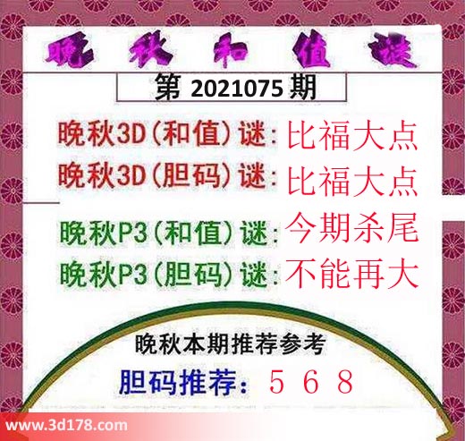 晚秋p3(胆码)谜:不能再大