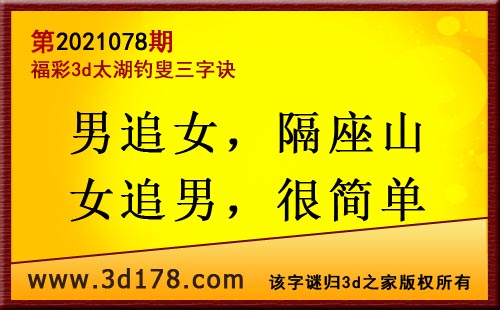 3d第21078期太湖字谜:男追女,隔座山,女追男,很简单