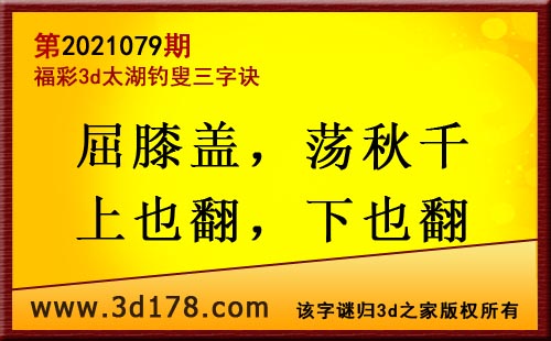 3d第21079期太湖字谜:屈膝盖,荡秋千,上也翻,下也翻