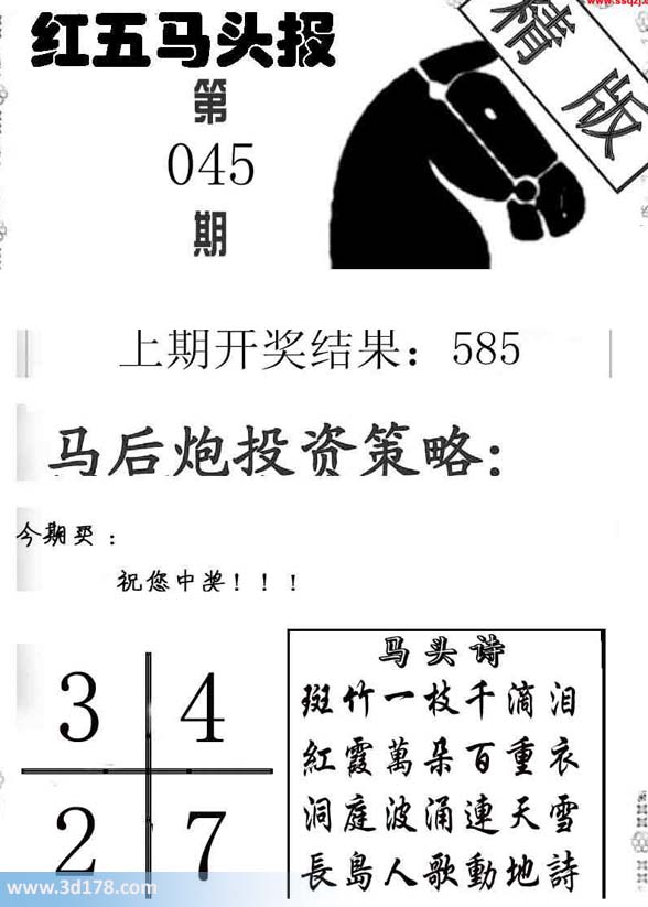福彩3d第2014045期红五马头报:斑竹一枝千滴泪