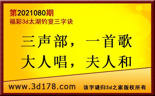 3d第21080期太湖字谜:三声部,一首歌,大人唱,夫人和