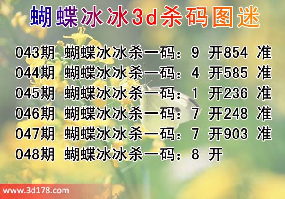 043期 蝴蝶冰冰杀一码:9 开854 准