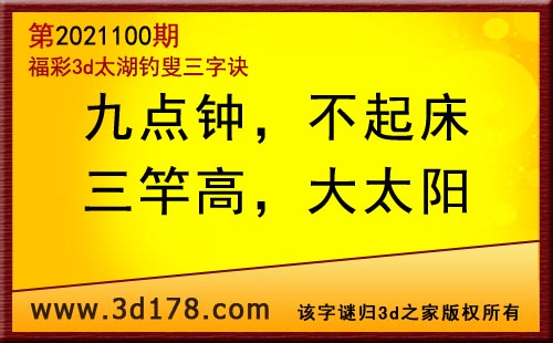 3d第21100期太湖字谜:九点钟,不起床,三竿高,大太阳