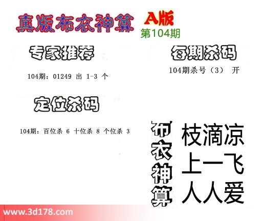 3d之家布衣图库之布衣神算图第2021104期详解: