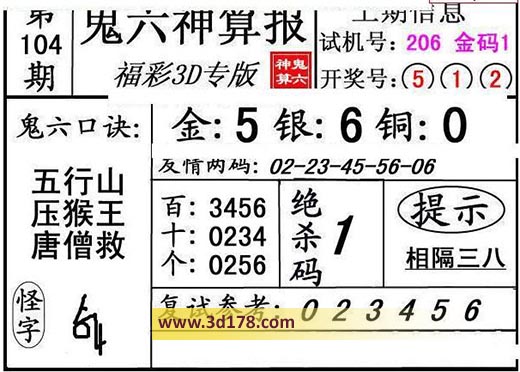 3d第21104期鬼六神算报为您推荐鬼六口诀: