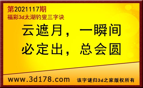 3d第21117期太湖字谜:云遮月,一瞬间,必定出,总会圆