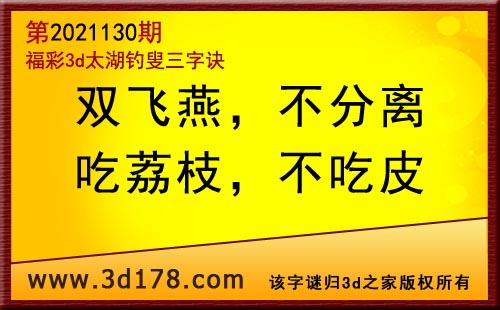 3d第21130期太湖字谜:双飞燕,不分离,吃荔枝,不吃皮