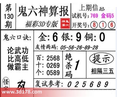 3d第21130期鬼六神算报为您推荐鬼六口诀: