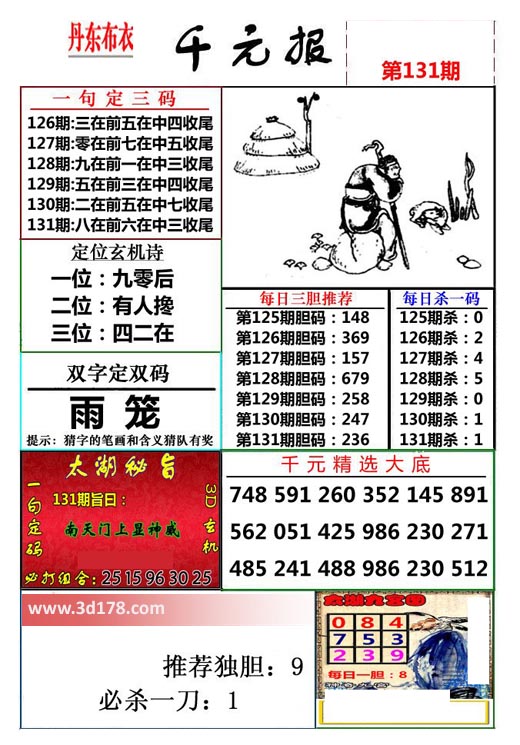 福彩3d第2021131期布衣千元报图详情分析如下: