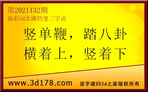 3d第21132期太湖字谜:竖单鞭,踏八卦,横着上,竖着下