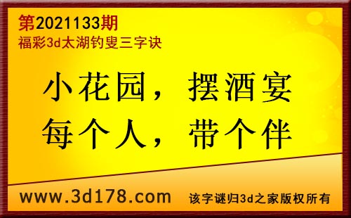 3d第21133期太湖字谜:小花园,摆酒宴,每个人,带个伴