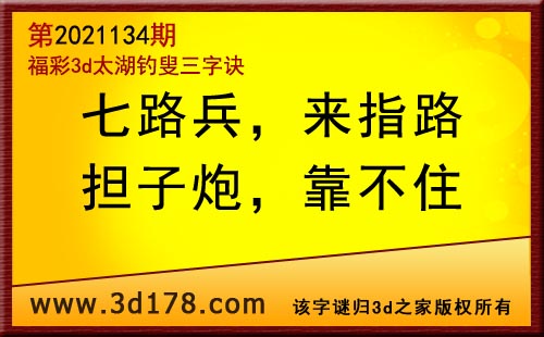 3d第21134期太湖字谜:七路兵,来指路,担子炮,靠不住