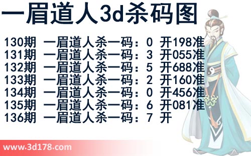该一眉道人3d杀码图由3d之家3d图库频道原创,仅供彩民参考,温馨提供。