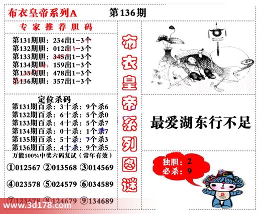 福彩3d第2021136期布衣皇帝A版布衣专家独家推荐: