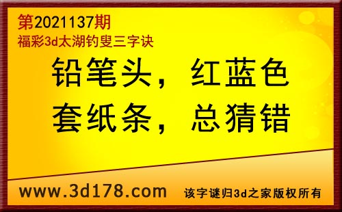 3d第21137期太湖字谜:铅笔头,红蓝色,套纸条,总猜错