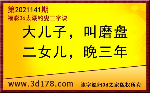 3d第21141期太湖字谜:大儿子,叫磨盘,二女儿,晚三年