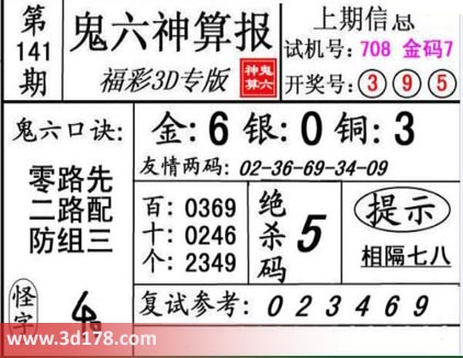 3d第21141期鬼六神算报为您推荐鬼六口诀: