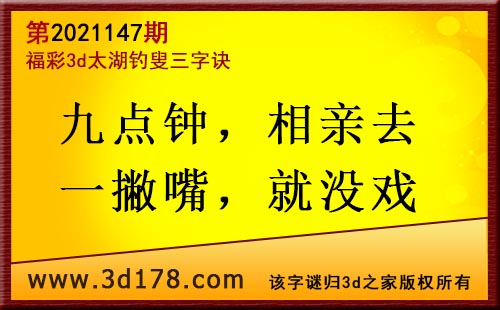 3d第21147期太湖字谜:九点钟,相亲去,一撇嘴,就没戏