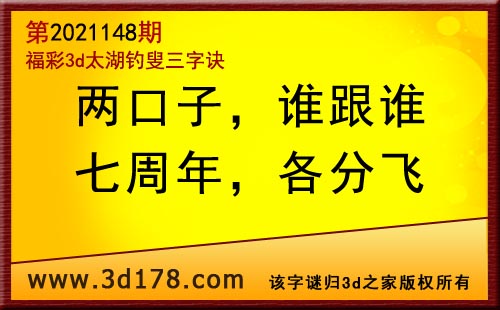 3d第21148期太湖字谜:两口子,谁跟谁,七周年,各分飞